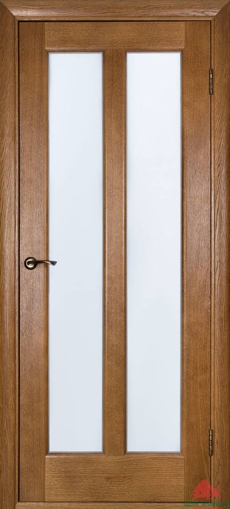 Коробочный брус - (с уплотнителем) и наличник изготовлены на основе массива сосны, шпонированного дубом.